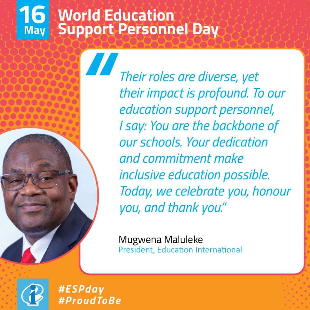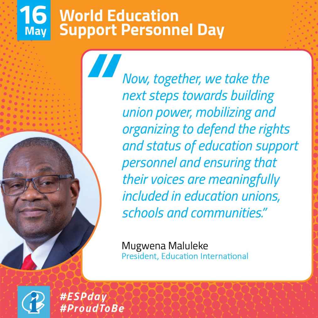 एजुकेशन इंटरनेशनल के अध्यक्ष मुग्वेना मालुलेके के कोट कार्ड को डाउनलोड करने के लिए [यहां क्लिक करें]।